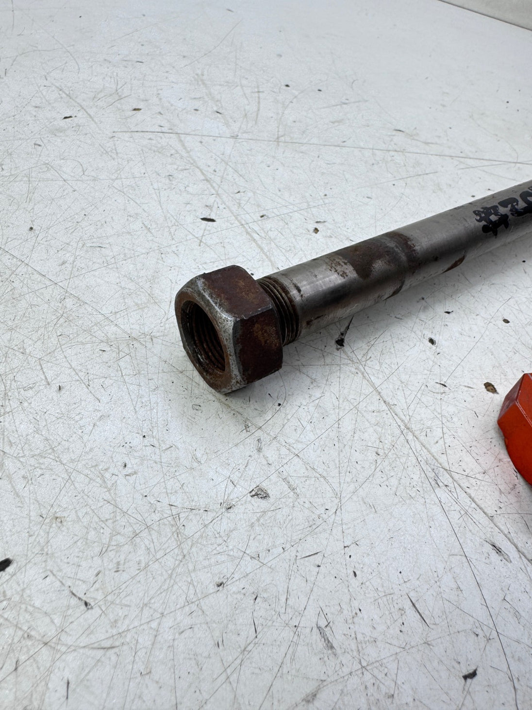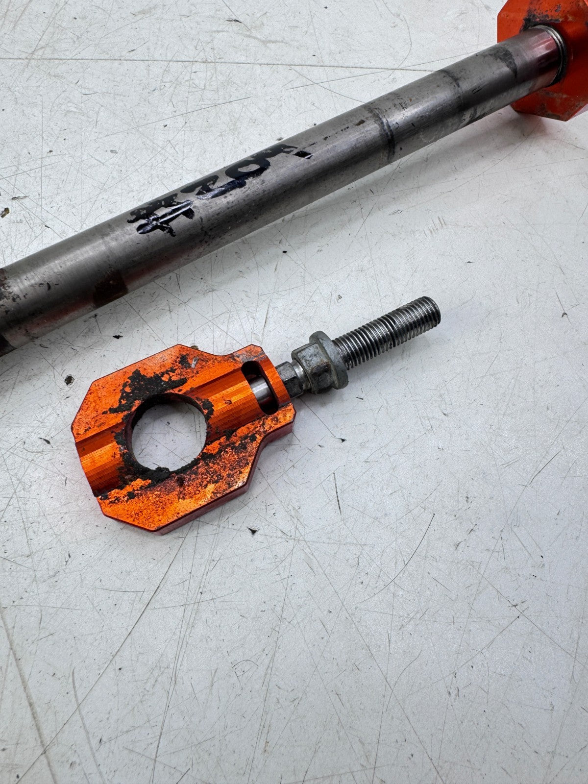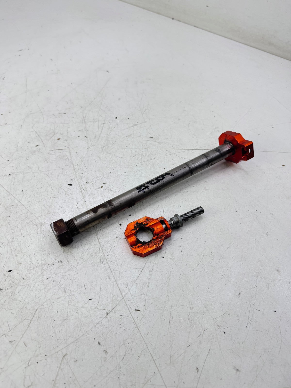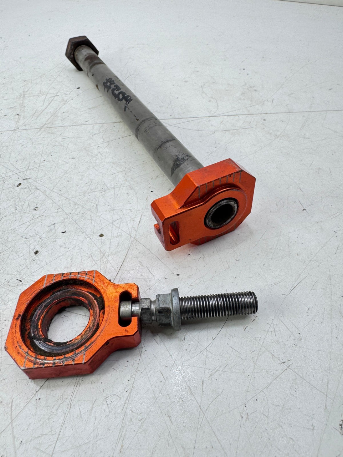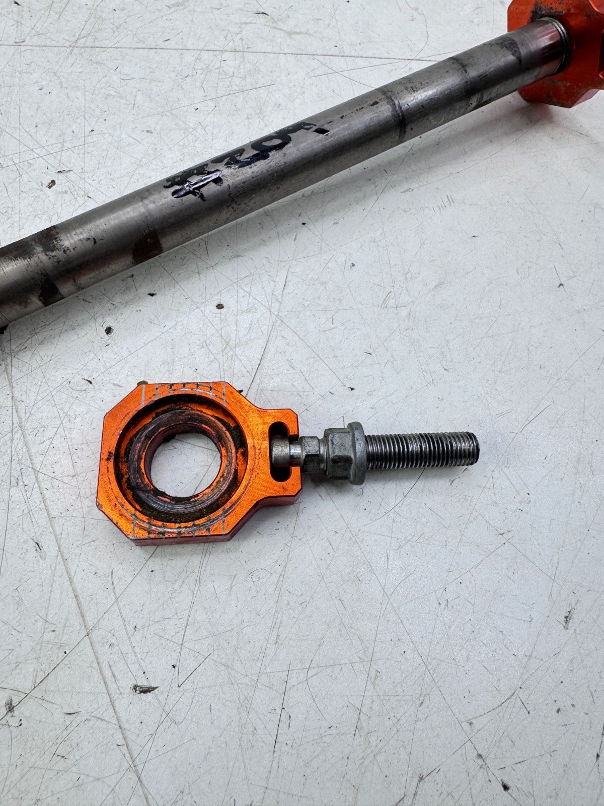 2009 KTM 300EXC Rear Axle with Orange Tensioner Blocks OEM #204