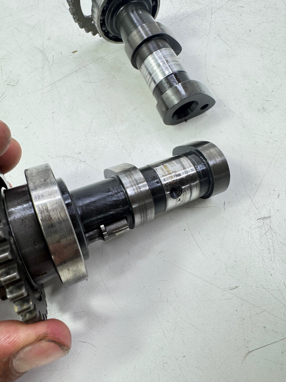 Exhaust cam good, Intake cam has journal wear, may need repair please see pictures for further details, photos show all parts included, some parts of assemblies might be missing so look carefully at what's included.